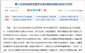 2012年10月18日,江苏省卫生厅举办的“第三方评价在医疗体系中的作用”研讨会。研讨会中患者满意度第三方调查和评价模型设计和项目执行都是南京医之良相公司创新设计和科学执行。这也是国内最早开始在医疗机构开展第三方患者满意度调查的项目。